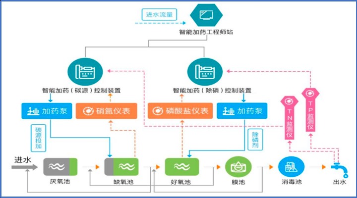 污水处理厂提质增效的方向除了加强精细化管理、工艺改进外,全过程的智能控制具有很大的改善空间,通过智能提升、智能曝气等来控制电力的消耗,通过智能加药控制在保证达标排放的前提下来节约药剂的投加量。