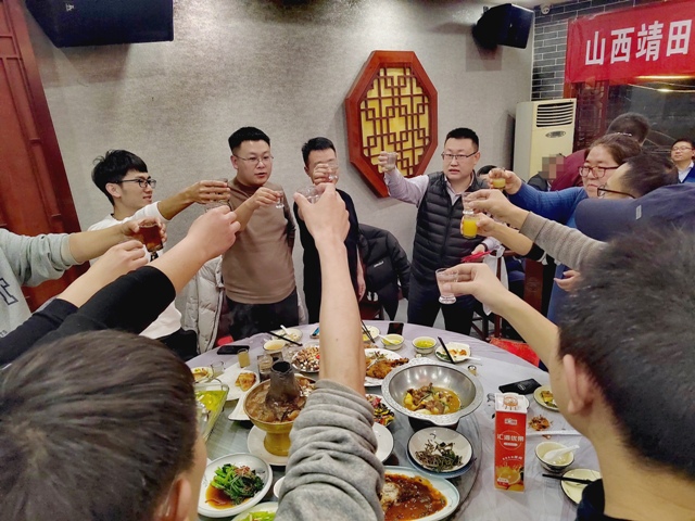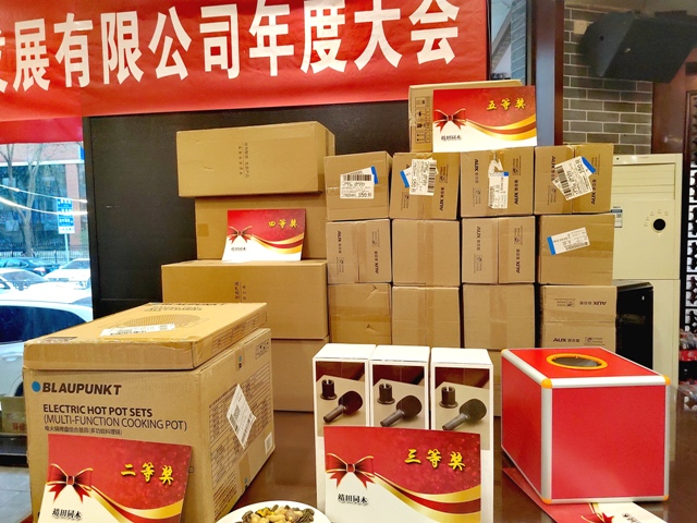 会后,为感谢大家一年来的辛勤付出,公司举行了聚餐会.领导和员工们欢聚一堂,为了活跃晚宴气氛,现场举办抽奖活动,抽取一等奖1名,二等奖2名,三等奖3名,四等奖6名以及阳光普照奖数名。整个聚餐会气氛热烈,抽奖、抢红包等活动引来员工们的阵阵掌声和欢呼声,把聚餐会推向了一个又一个高潮。